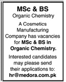 Vacancies in Cosmetics Manufacturing Company Advertisement December 2018