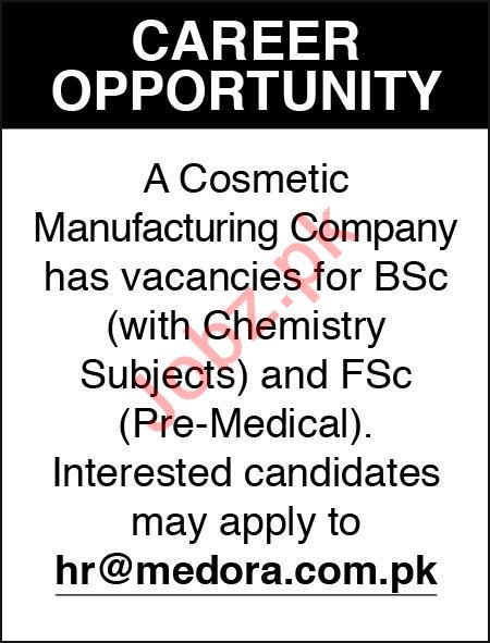 Cosmetics Manufacturing Company Chemisty Jobs 2020