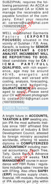 Cost Accountant, Account Manager And Manager Tax Wanted