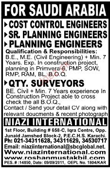 Cost Control Engineers, Sr.Planning Engineer Wanted