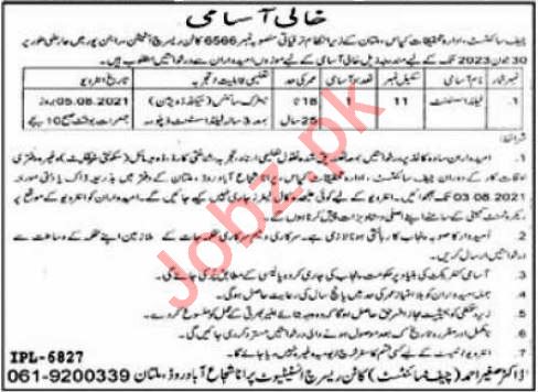 Vacancies in Central Cotton Research Institute Advertisement July 2021