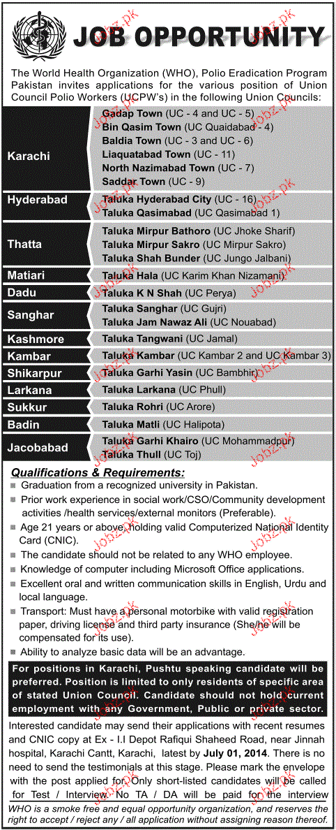Apply as per details in job advertisement. Login to view further details of how to apply via https://www.jobz.pk online.