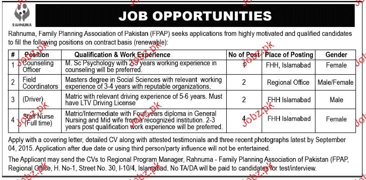 Apply as per details in job advertisement. Login to view further details of how to apply via https://www.jobz.pk online.