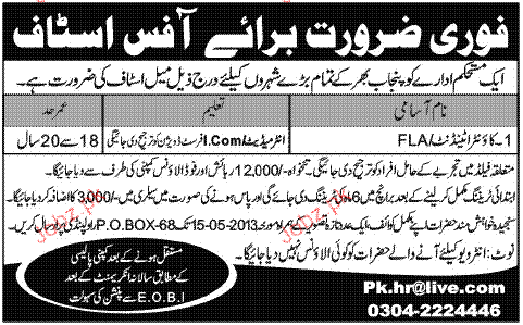 Apply as per details in job advertisement. Login to view further details of how to apply via https://www.jobz.pk online.