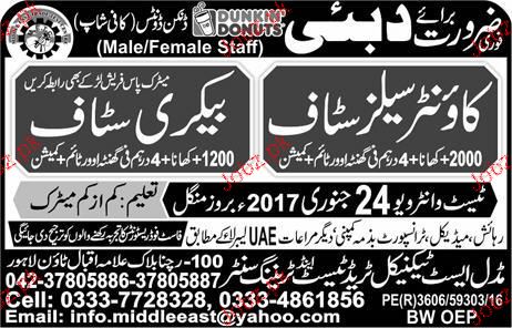 Counter Sales Staff And Bakery Staff Job Opportunity