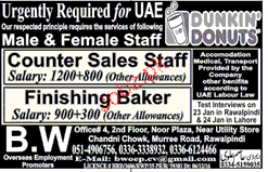 Counter Sales Staff And Finishing Bakers Job Opportunity