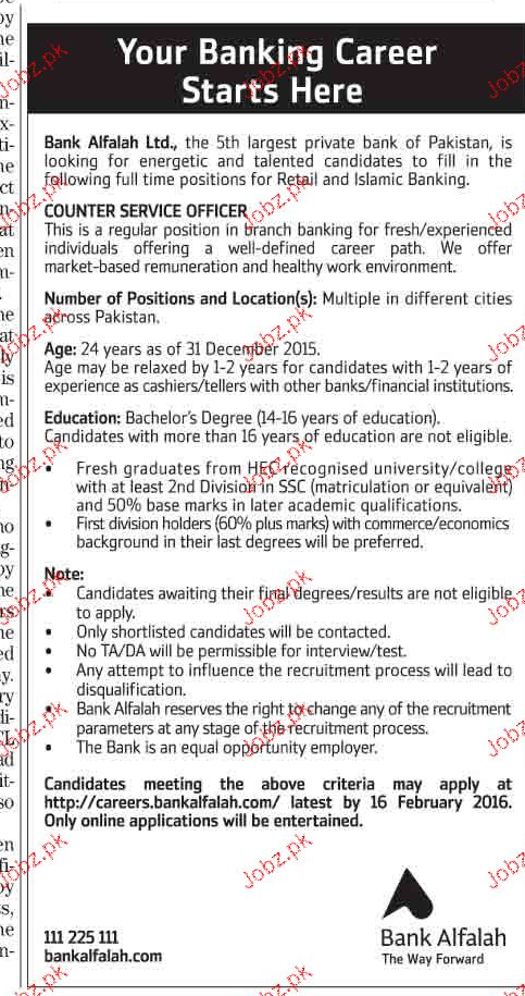 Apply as per details in job advertisement. Login to view further details of how to apply via https://www.jobz.pk online.