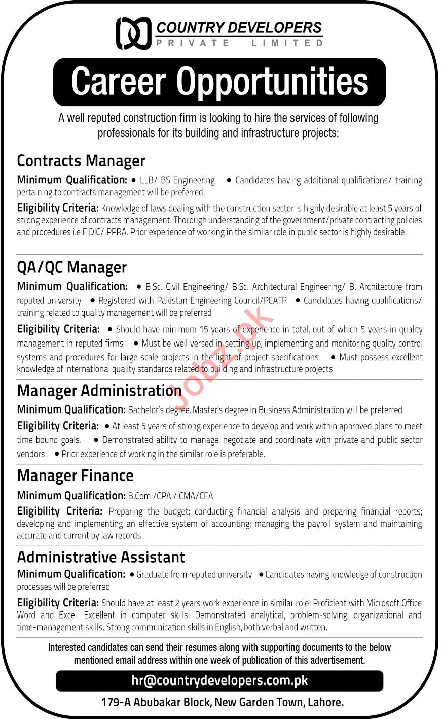 Latest Country Developers Private Limited Management Posts Lahore 2025