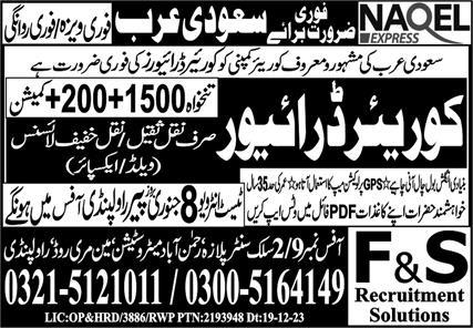 Latest Driving jobs and others Overseas jobs in F & S Recruitment Solutions closing date is around January 8, 2024, see exact from ad. Read complete ad online to know how to apply on latest F & S Recruitment Solutions job opportunities. Free medical, transport and accommodation may be available.