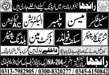 Ranjha Trade Test & Training Center Courses admissions 2025 has been started. Ranjha Trade Test & Training Center Rawalpindi Punjab Pakistan welcomes students to apply for admissions in academic year 2025 in Technical Course. Eligible students for fulfilling criteria for admissions in can enroll as per Private admission policy 2025 till closing date. Read newspaper ad for exact details.