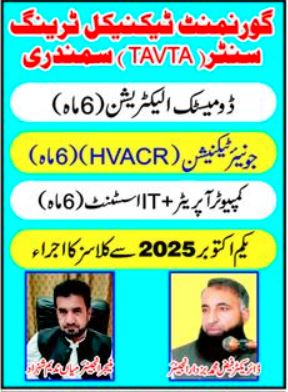 Admissions in Technical Education & Vocational Training Authority TEVTA 2025 for Courses Admissions has been announced. Students who want to take admissions in Technical Education & Vocational Training Authority TEVTA Faisalabad Punjab Pakistan for academic year 2025 to continue education in Science College can apply. Students for admissions in can apply for online or campus classes as per Government institute criteria till admission closing date. Read newspaper ad for exact details.