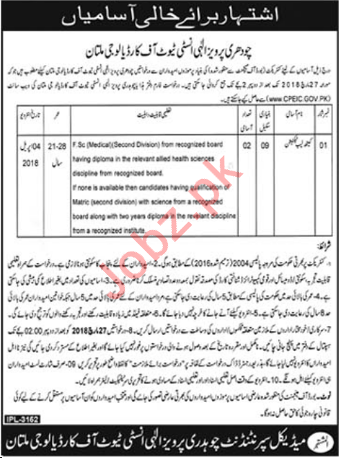 CPEIC Chaudhry Pervaiz Elahi Institute of Cardiology Jobs