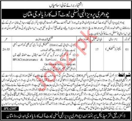 Latest Chaudhry Pervaiz Elahi Institute of Cardiology Engineering Posts Multan 2025