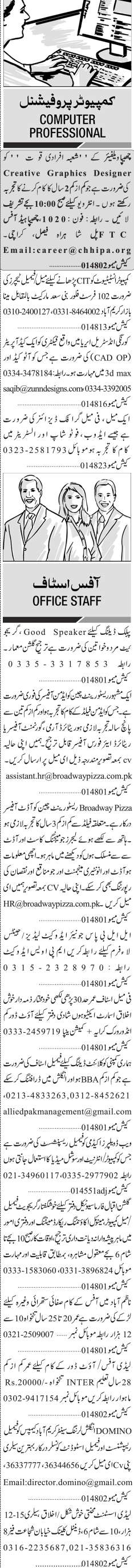 Apply as per details in job advertisement. Login to view further details of how to apply via https://www.jobz.pk online.