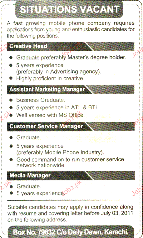 Apply as per details in job advertisement. Login to view further details of how to apply via https://www.jobz.pk online.