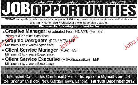 Apply as per details in job advertisement. Login to view further details of how to apply via https://www.jobz.pk online.