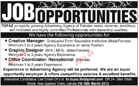 Apply as per details in job advertisement. Login to view further details of how to apply via https://www.jobz.pk online.