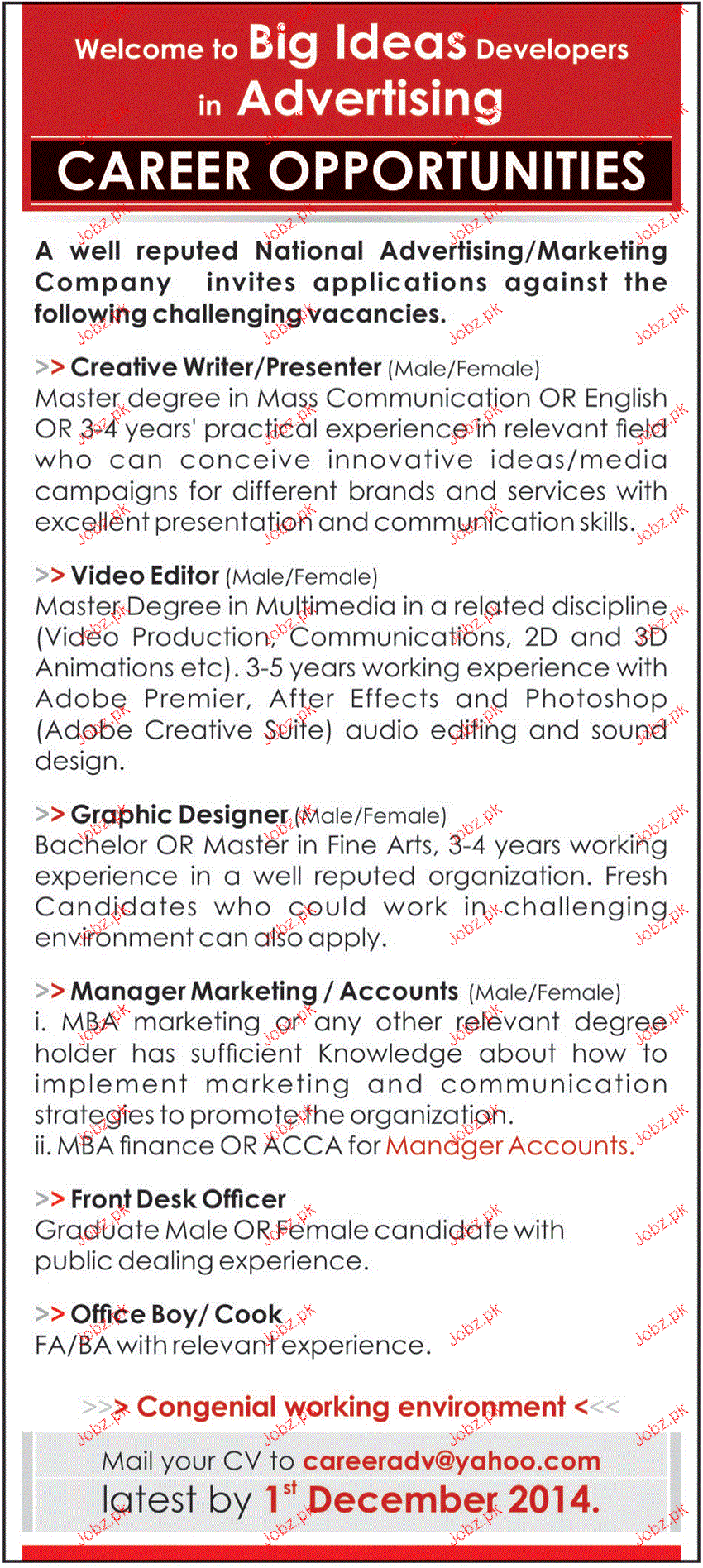 Apply as per details in job advertisement. Login to view further details of how to apply via https://www.jobz.pk online.