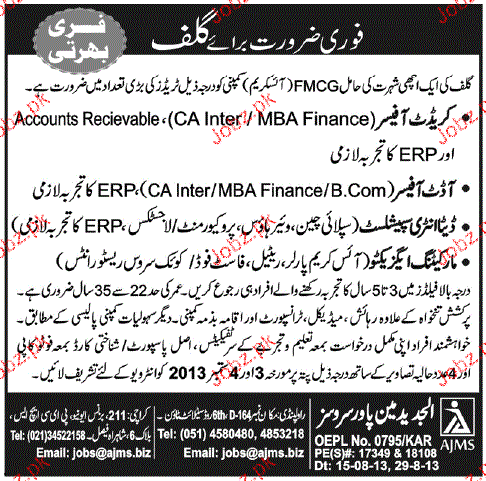 Credit Officer, Audit Officers, Data Entry Specialist Wanted