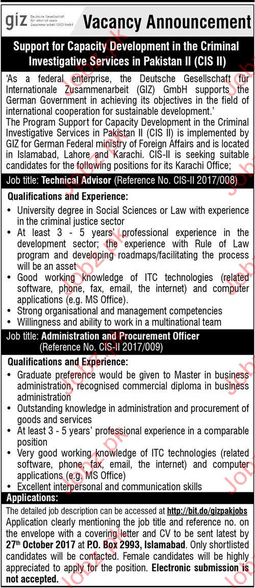 Latest GIZ Pakistan Consultant Posts Karachi 2025