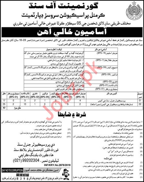 Latest Criminal Prosecution Services Department Admin Clerical Posts Karachi 2025