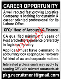 Apply as per details in job advertisement. Login to view further details of how to apply via https://www.jobz.pk online.