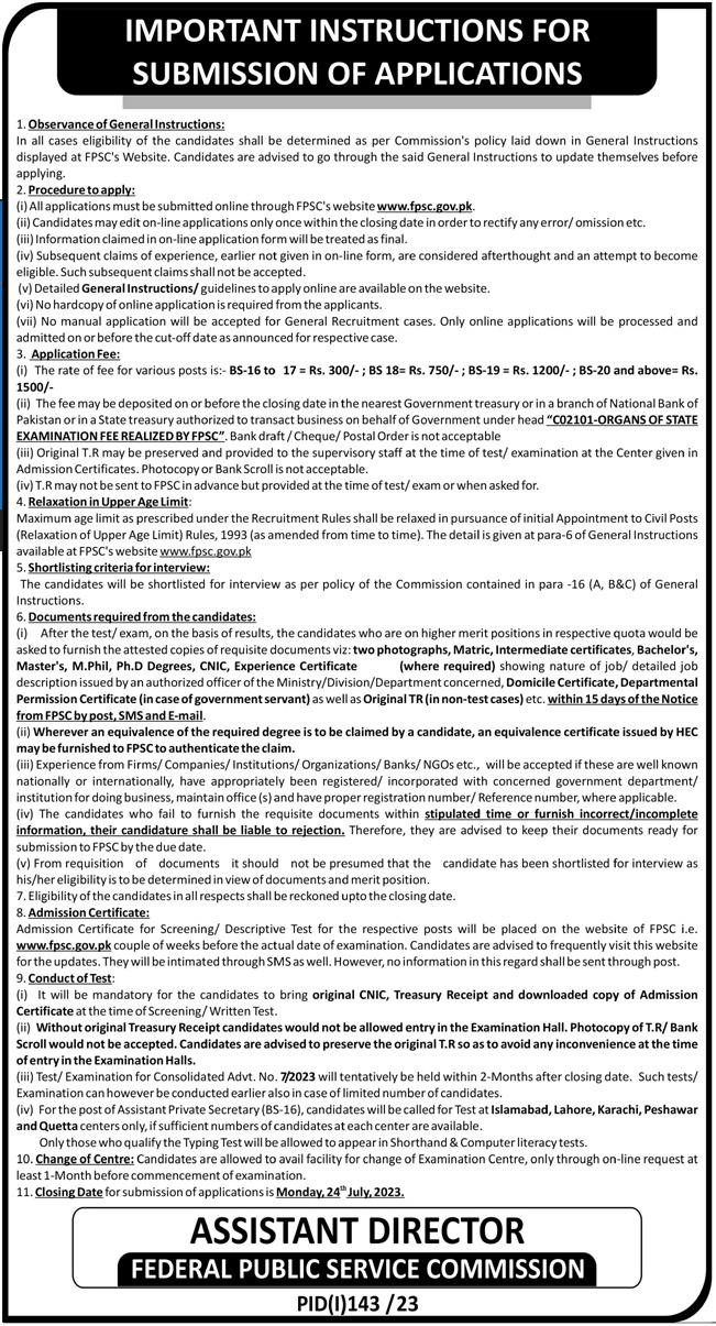 Vacancies in Federal Public Service Commission FPSC Advertisement July 2023