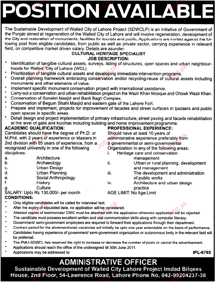 Apply as per details in job advertisement. Login to view further details of how to apply via https://www.jobz.pk online.