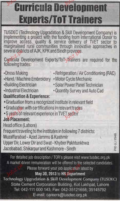 Apply as per details in job advertisement. Login to view further details of how to apply via https://www.jobz.pk online.
