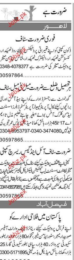 Latest Private Company Admin Clerical Posts Lahore 2025