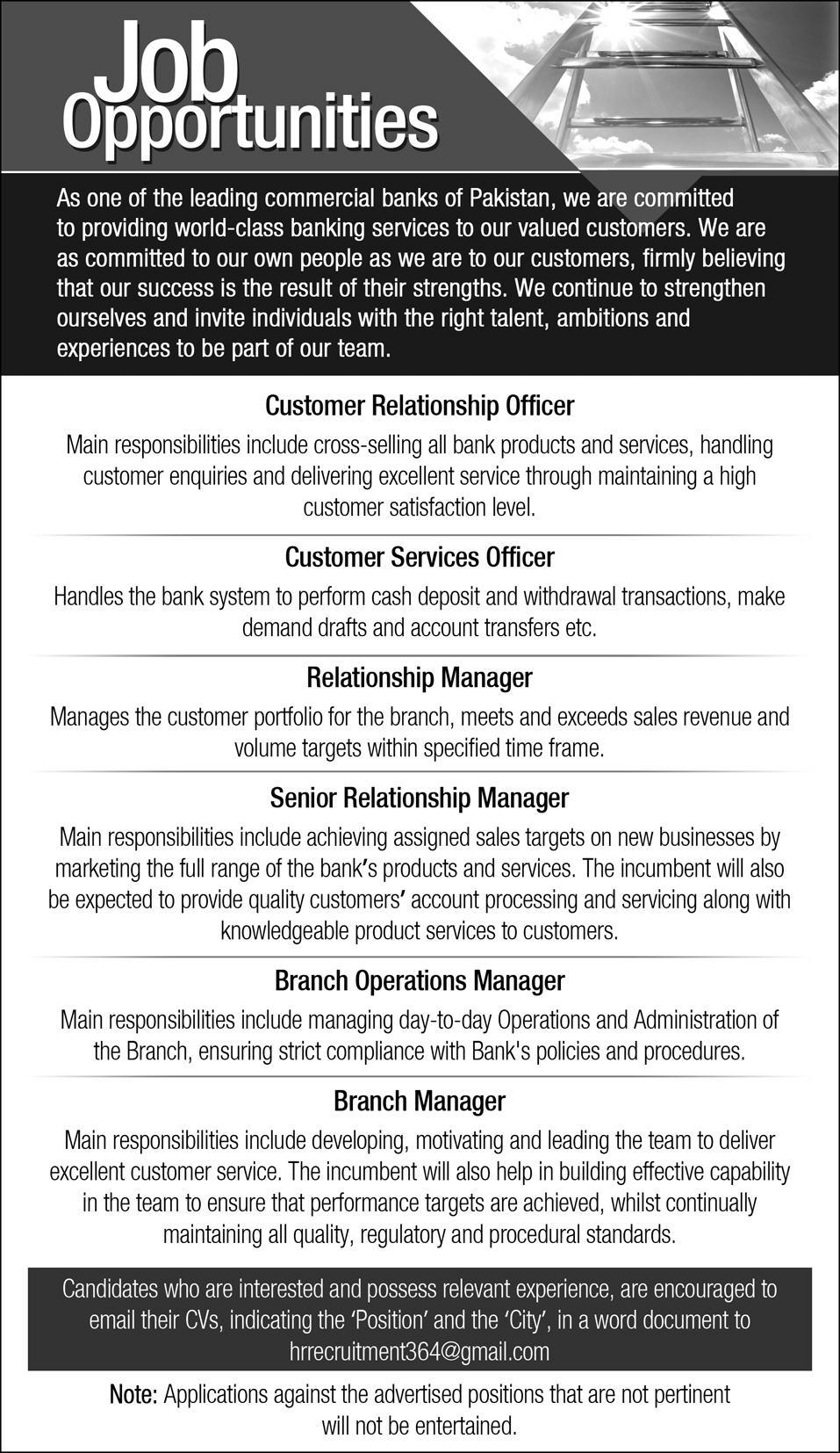 Apply as per details in job advertisement. Login to view further details of how to apply via https://www.jobz.pk online.