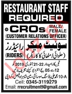 Vacancies in Restaurant Advertisement January 2019