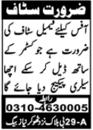 Apply as per details in job advertisement. Login to view further details of how to apply via https://www.jobz.pk online.