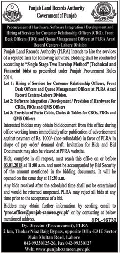 Latest Punjab Land Records Authority PLRA Management Posts Lahore 2025