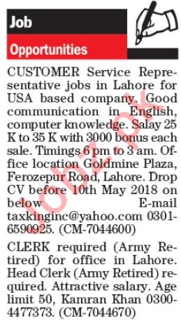 Customer Service Representative CSR Jobs 2018 in Lahore
