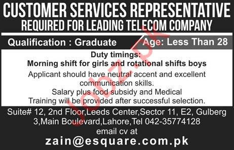 Latest Esquare Services Pvt Limited Customer Service Posts Lahore 2025