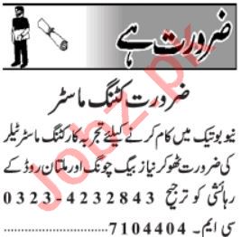 Cutting Master & Tailor Master Jobs 2021 In Lahore