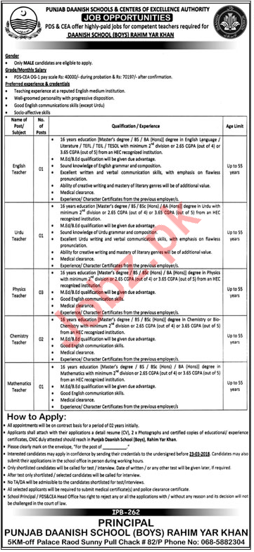 Latest Punjab Daanish Schools & Center Of Excellence Authority Management Posts Rahim Yar Khan 2025