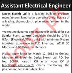 Latest Dadex Eternit Limited Engineering Posts Lahore 2025