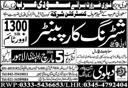 Dahlawi Manpower Recruiting is looking for candidates for following posts as per job advertisement published in daily Express Newspaper of March 5, 2024 for location Riyadh, riyadh Saudi Arabia: