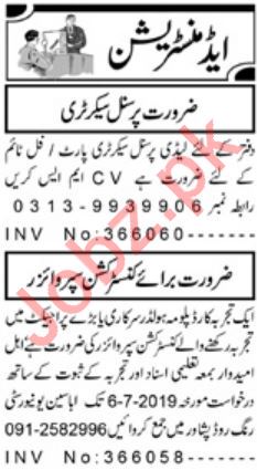Latest Private Company Admin Clerical Posts Peshawar 2025