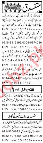 Customer Relationship Officer CRO, Assistant Manager, Branch Manager, Receptionist, HR Officer, Supervisor, Assistant Supervisor, Account Manager, Office Assistant, Male/ Female Executives, Salesman, Female Marketing Staff, Sales Staff, Computer Operator, Coordinators, Teacher, Junior Teacher, Primary Teacher, Secondary Teacher, Subject Teacher (Maths, Physics, Chemistry, Biology, English, Urdu, Pak Studies & Islamic Studies), Montessori Teacher and Female Teacher required in well reputed schools and companies.