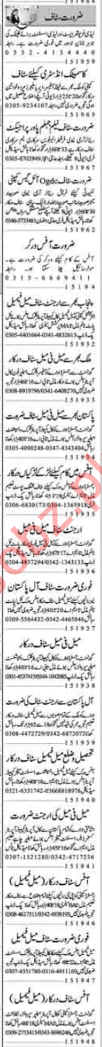 Apply as per details in job advertisement. Login to view further details of how to apply via https://www.jobz.pk online.