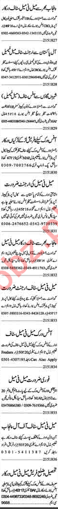 Male/ Female Executives, Salesman, Female Marketing Staff, Sales Staff, Computer Operator, Sales Manager, Customer Relationship Officer CRO, Assistant Manager, Branch Manager, Receptionist, HR Officer, Supervisor, Assistant Supervisor, Account Manager, Office Assistant and Clerk seeks in well progressive companies.
