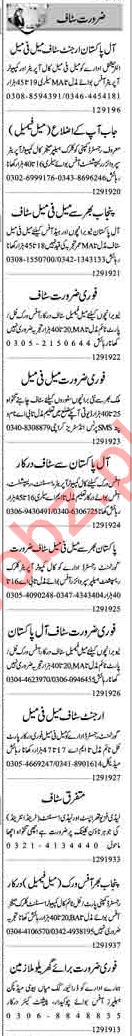 A leading and well known multinational companies requires the services of qualified and experienced persons for the positions of Telephone Operator, Computer Operator, Office Boy, Manager, Helper, Supervisor, Receptionist, House Maid, Cook, Chef, Chowkidar and Driver in Lahore.