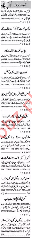A well known companies in Lahore seeks candidates for the posts of Computer Operator, Call Operator, Assistant Manager, Branch Manager, Receptionist, HR Officer, Supervisor, Assistant Supervisor, Account Manager, Office Assistant, Receptionist, Clerk, Naib Qasid, Watchman, Sanitary Worker, Security Guard, Driver, HTV Driver, LTV Driver and Teacher.