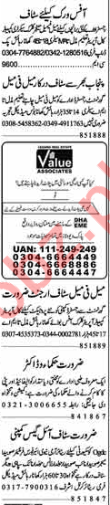 Computer Operator, Call Operator, Customer Relationship Officer CRO, Assistant Manager, Branch Manager, Receptionist, HR Officer, Supervisor, Assistant Supervisor, Account Manager, Office Assistant, Receptionist, Clerk, Naib Qasid, Watchman, Sanitary Worker, Security Guard, Driver, HTV Driver and LTV Driver seeks in well progressive companies.