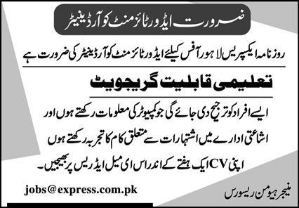 Vacant posts including advertisement coordinator are announced in Daily Express Lahore, lahore Punjab Pakistan as per 8 April 2024 advertisement in daily Express Newspaper. Educational qualifications required Bachelor etc.