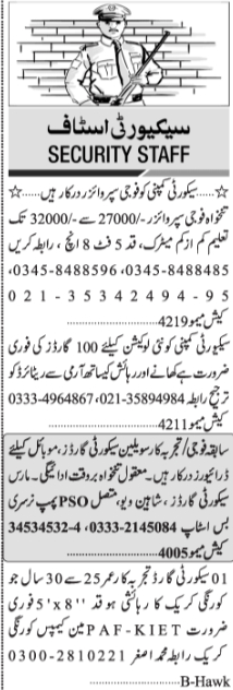 Daily Jang 12 May Security Staff Jobs 2019 In Karachi