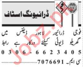 Daily Jang Driving Staff Jobs 2020 in Lahore